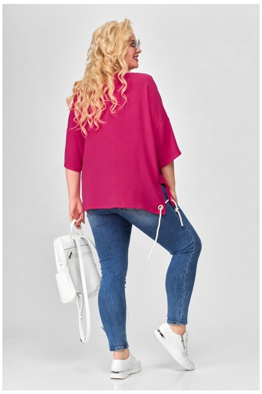 Представляем вам стильную блузку женскую нарядную цвета фуксия, которая идеально подойдет для офисной и праздничной одежды. Она выполнена из ткани жатка, имеет широкие манжеты на рукавах, дополненные пуговицами, и округлый вырез горловины. Блузка женская рубашка с оверсайз кроем, что обеспечивает комфорт и свободу движений. Она отлично сидит на любом типе фигуры и будет отлично сочетаться с брюками или юбкой. Сочетание яркого цвета и необычного кроя делает эту блузку женской неповторимой и привлекательной. Блузка фуксия женская - идеальный вариант для тех, кто хочет выделиться из толпы и при этом чувствовать себя комфортно и уверенно в своем образе. Она привнесет яркость и романтику в ваш гардероб, подчеркнет вашу индивидуальность и создаст неповторимый образ.