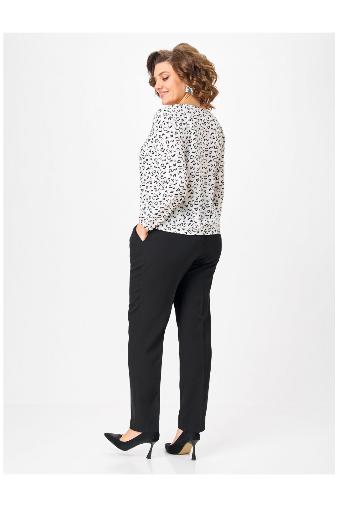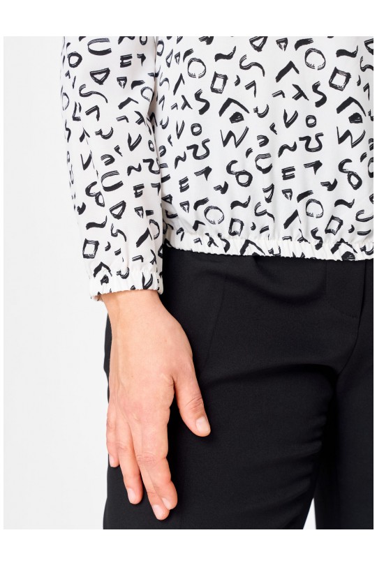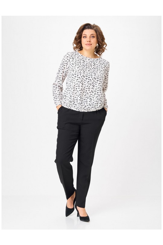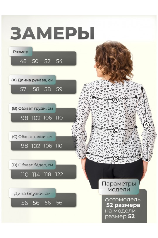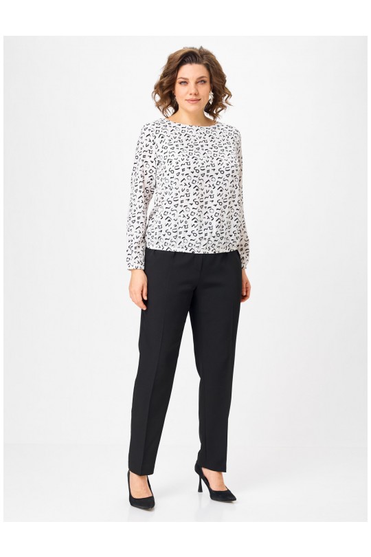 - Универсальность 365:Белый фон с ярким черно-белым принтом делает блузу базовой, но не скучной. Она отлично смотрится в классическом образе с черными брюками (как на фото), в офисе под жакет, на прогулке с джинсами или на праздничном ужине. Подходит для любого сезона.