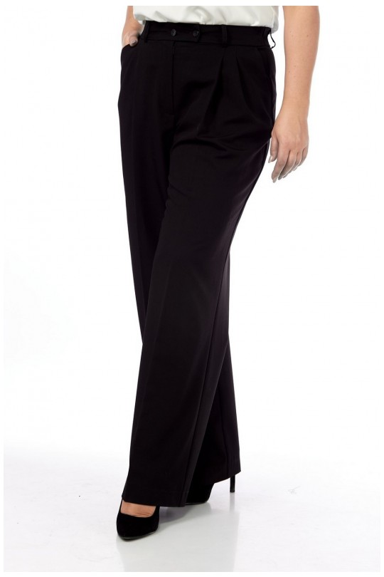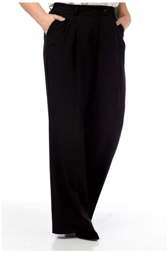 Брюки-палаццо с высокой посадкой из смесовой ткани, длинные и широкие штанины от бедра. Универсальная модель, которая подойдёт для любых типов фигуры. Мягкие складки по переду, притачной пояс на резинке хорошо тянется и отлично ложится по фигуре, боковые функциональные карманы. Эти женские брюки – безупречным вариантом для создания современного образа.
