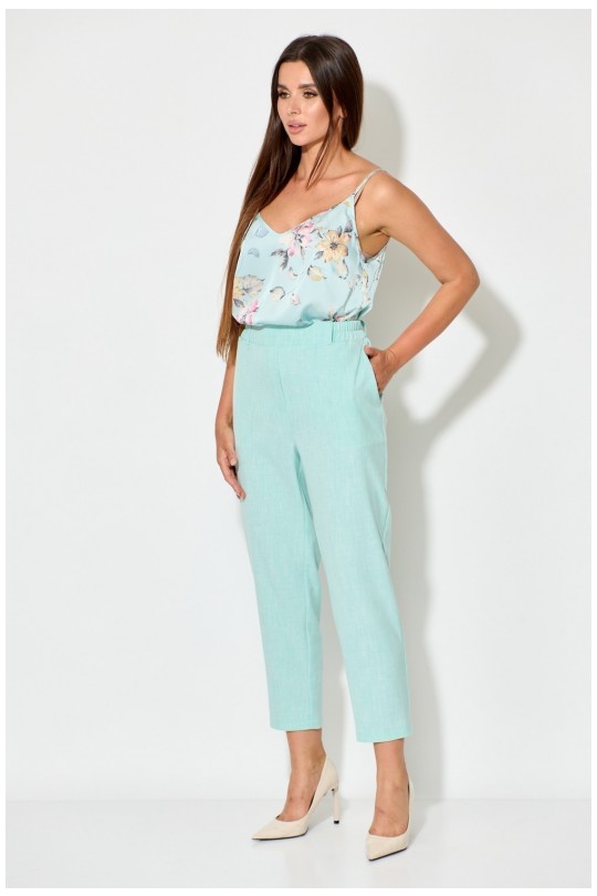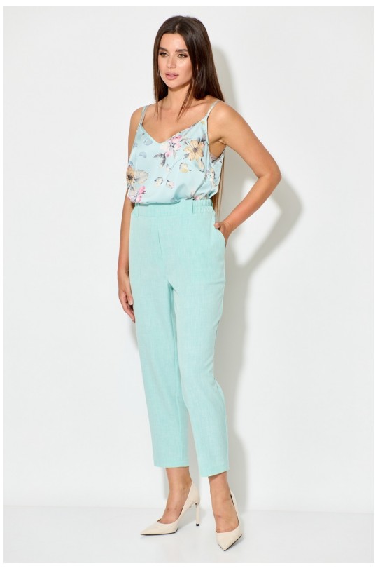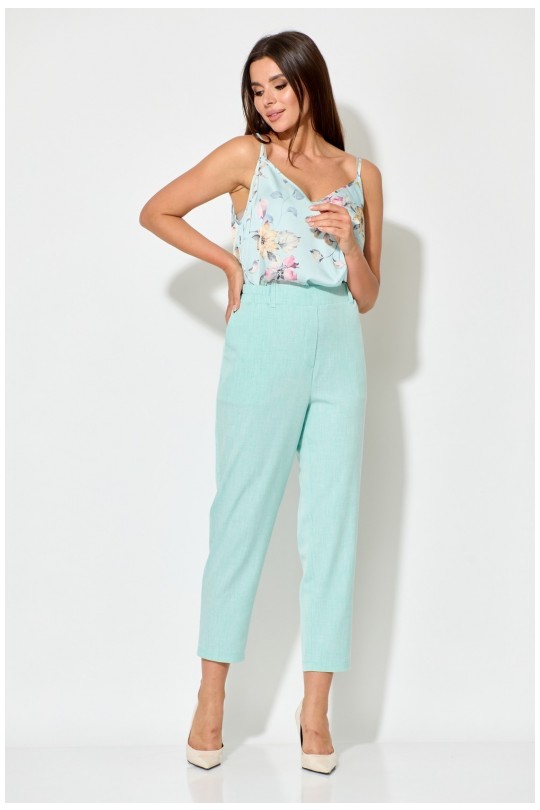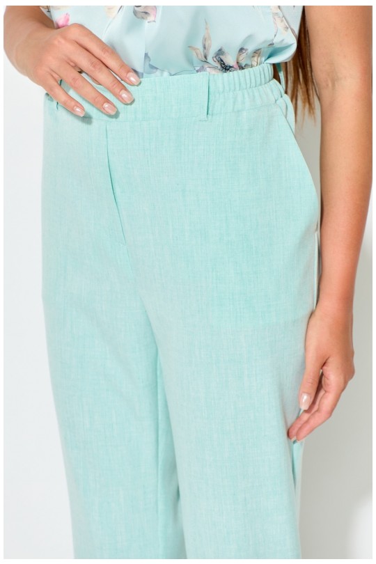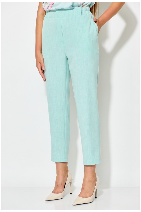 Классические женские брюки средней посадки с боковыми карманами, слегка заужены к низу. Из натуральной хлопчато-бумажной ткани с незначительным добавлением эластана. Пояс с эластичной тесьмой, без застежки. Однотонные оттенки и мягкий дышащий материал с гипо-аллергенным эффектом для защиты тела в холодную погоду зимой и для высоких температур летом, осенью и весной.