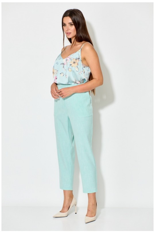 При съемке в образе использована блуза-топик нашего бренда под артикулом 4013 с регулируемыми бретелями.