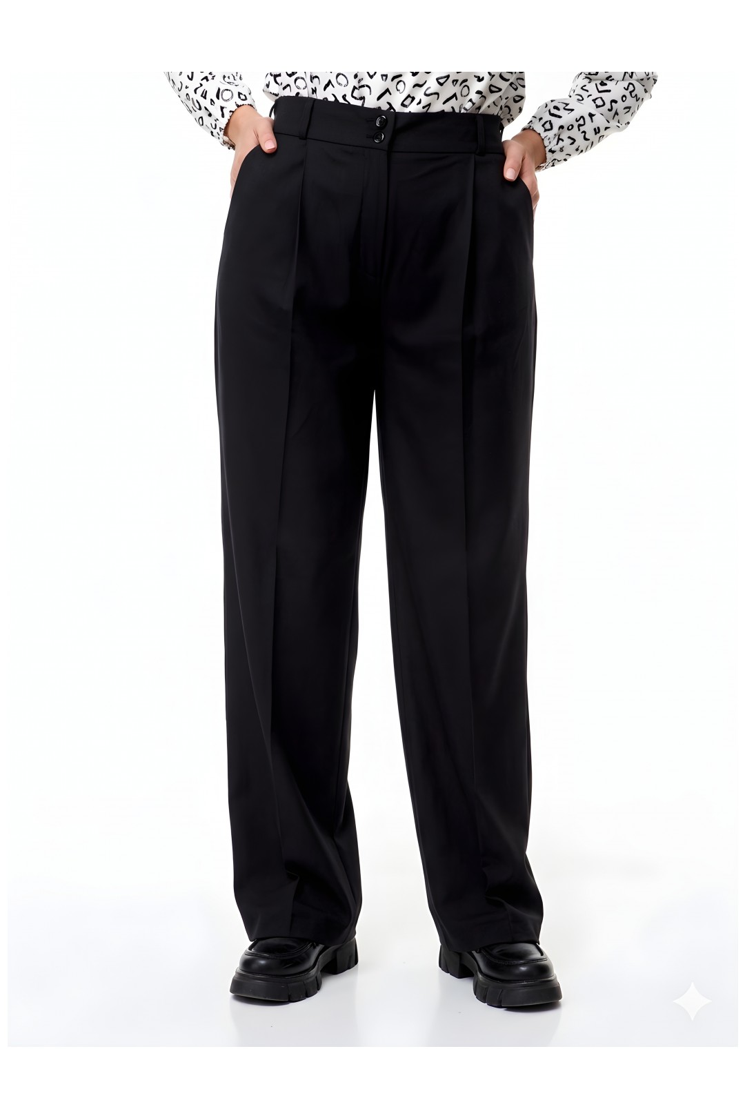 Черные брюки палаццо от бренда Abbi — воплощение современной классики и безупречного стиля. Модель выполнена из облегченной смесовой ткани «лилу», которая идеально сочетает в себе дышащие свойства хлопка, мягкость вискозы и эластичность для комфортной посадки. Свободный силуэт в сочетании с глубоким черным цветом делает эти брюки универсальной базой: они одинаково гармонично дополнят строгий офисный образ с жакетом или элегантный вечерний аутфит с шелковой блузой.