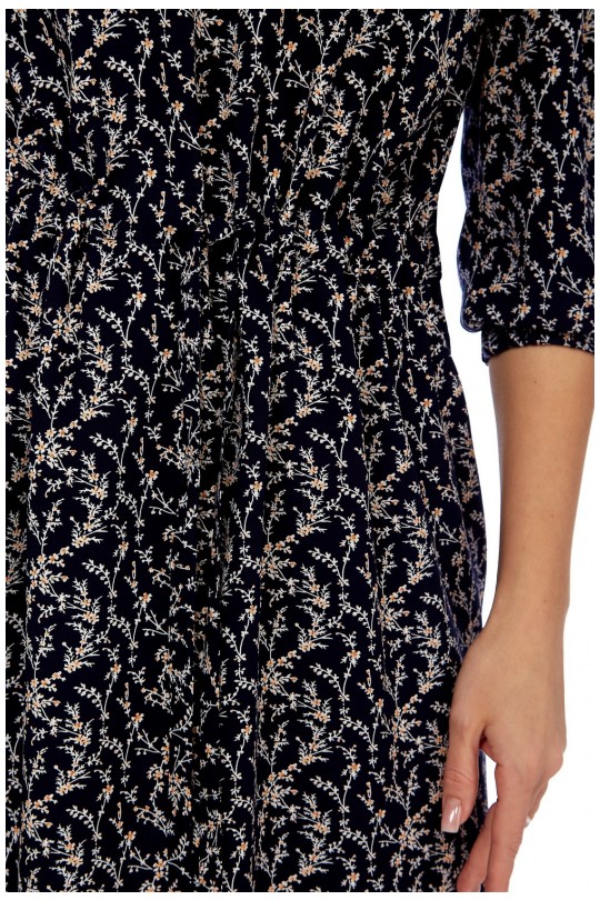 Рукав 3/4, с резинкой по низу и окату. Платье идеально подчеркнёт все достоинства вашей фигуры и создаст очень женственный силуэт.