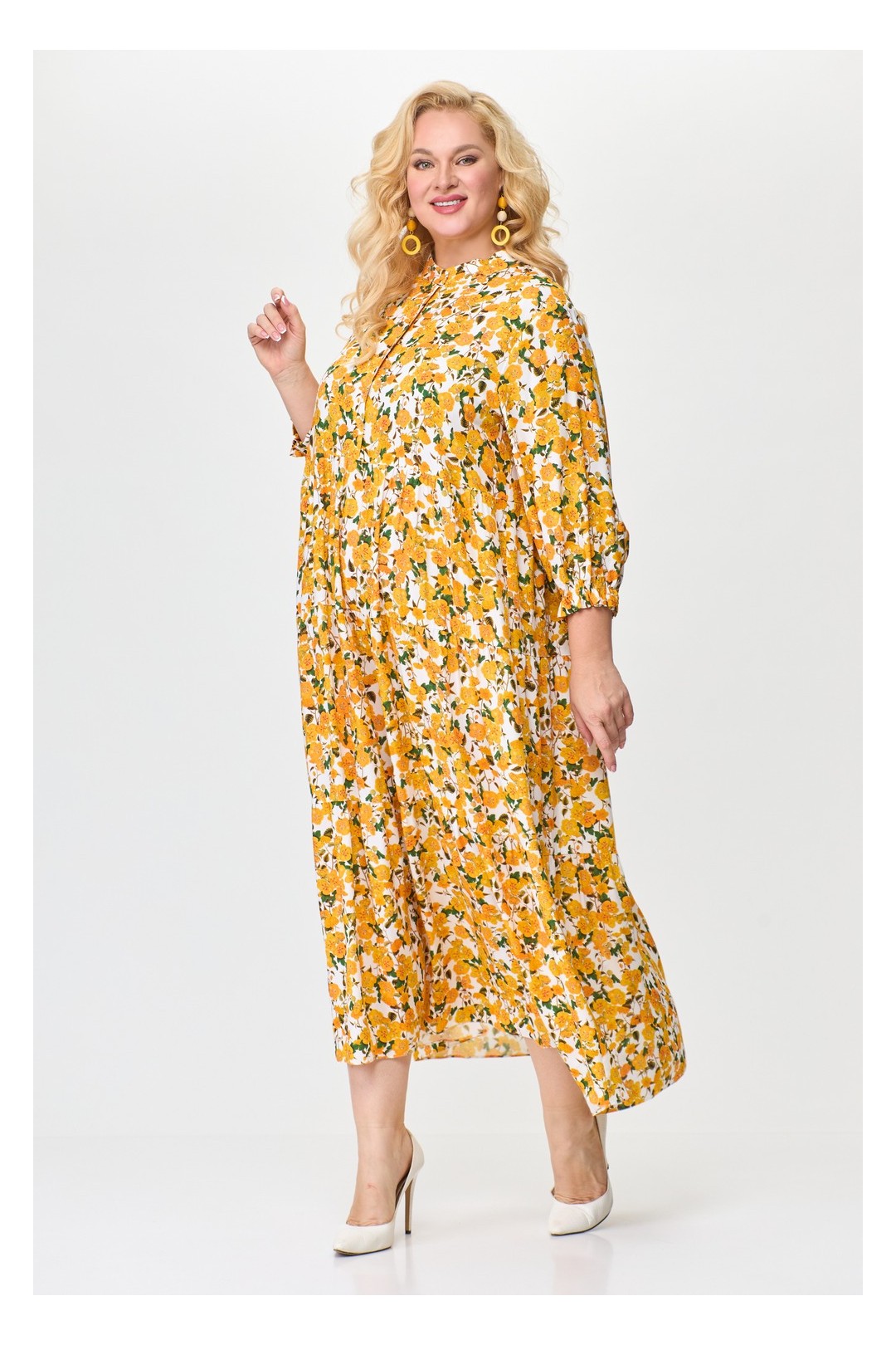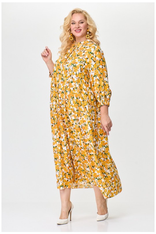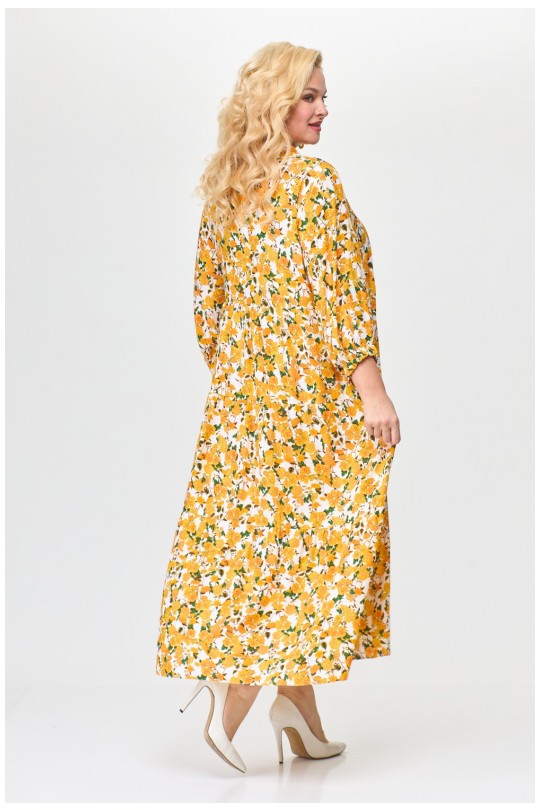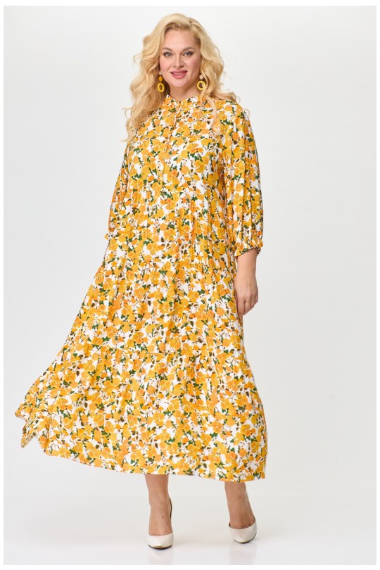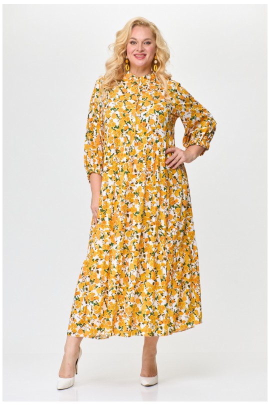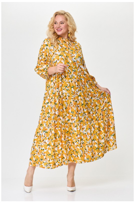 Представляем Вам летнее женское платье от белорусского производителя Абби Стиль. Изготовлено из натурально вискозы, что делает его идеальным выбором для жарких летних дней. Силуэт трапеции подчеркнет Вашу женственность, а отрезная стойка придаст платью элегантности. Рукав втачной одношовный расширенный к низу, длина три четверти, а по низу рукава два ряда эластичной резинки (эластичная резинка), что добавляет оригинальности. Подрез под линией груди подчеркнет Вашу талию, а три волана слегка присобраны, создавая легкий и непринужденный образ. Застежка верхней части переда центральная на 6 петель и 6 пуговиц. Платье имеет длину макси и подойдет как для прогулки на пляже, так и для деловой встречи в офисе. Будьте уверены, что в этом платье Вы будете выглядеть непревзойденно! Порадуйте себя покупкой качественной белорусской одежды.