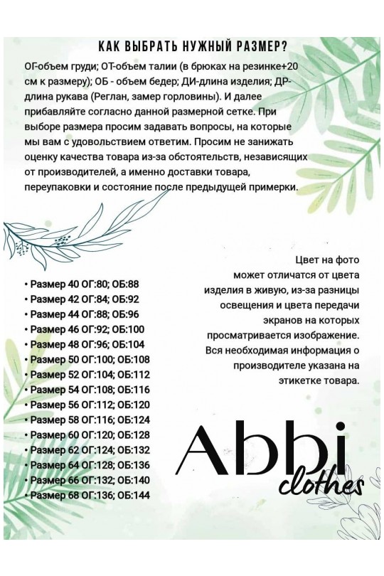 Рост фотомодели – 170 см. Размер фотомодели – 48. ОГ-обхват груди; ОТ-обхват талии; ОБ-обхват бедер; ДИ-длина изделия; ДР-длина рукава.